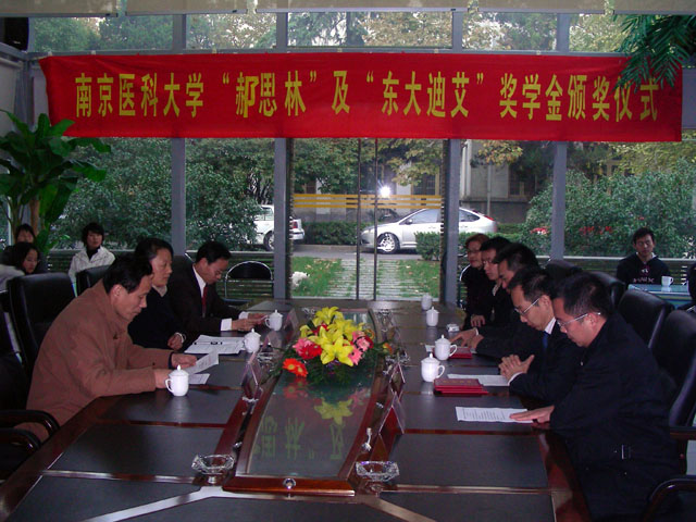 2008年11月25日下午,南京医科大学2008学年“郝思琳助学金”及“东大迪艾奖学金”颁奖仪式在岁月阁举行。常州郝思琳医用仪器有限公司总经理奚金华先生和南京东大迪艾基因技术有限公司总经理施卫文先生,南京医科大学研究生处周建伟处长、基础医学院党委陈春燕书记及病理学系部分教师和研究生共同出席了颁奖仪式。颁奖仪式由病理学系主任冯振卿教授主持。