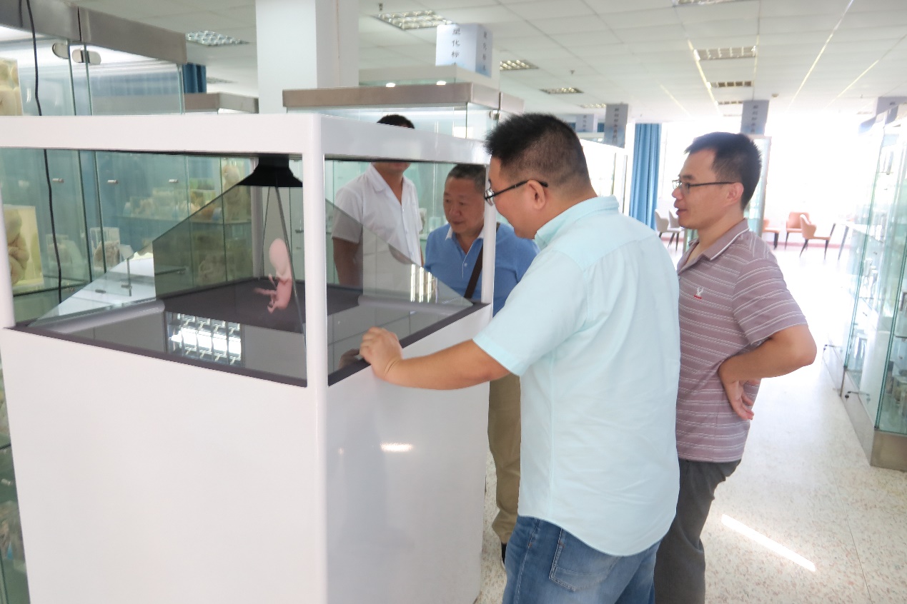 会后,於平老师在古慕峰和毛志远老师的陪同下参观了学系实验室和新建的“人体标本学习中心”。当他看到多年前亲手制作的标本陈列在学习中心时甚感欣慰,表示如果有机会可以给学系再制作一些标本供教学使用,於老无私奉献的精神让青年老师们感动。