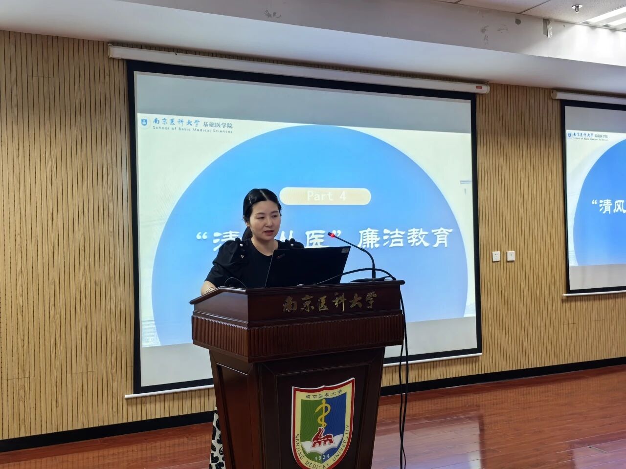 结合专业特点,贺淑蕊老师还开展了思想教育,围绕诚信教育,引导毕业生要恪守个人诚信和学术诚信。贺老师特别强调了“清风从医”廉洁教育,寄语毕业生未来无论身处何种岗位,都要筑牢思想防线,坚守廉洁底线,涵养良好的职业操守,做德才兼备的医学人才。此外,针对毕业生未来可能面临的新环境,贺老师还进行了安全教育,内容涵盖预防求职陷阱、人身财产安全,提醒毕业生时刻绷紧安全弦,平安开启人生新篇章。最后,她还语众心长地寄语全体毕业生,并送上美好祝福。