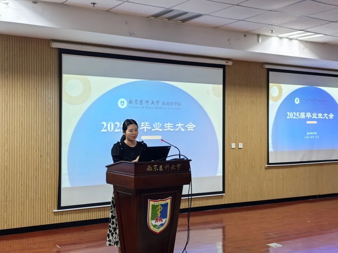 栀子花开时,又到毕业季。为做好毕业生离校服务工作,确保2025届毕业生工作平稳有序进行,营造温馨和谐的毕业氛围,6月11日下午,基础医学院于学海楼D001召开2025届毕业生年级大会。学院段振东副书记副院长、学工办贺淑蕊老师以及2025届全体本研毕业生参加大会。会议由贺淑蕊老师主持。
