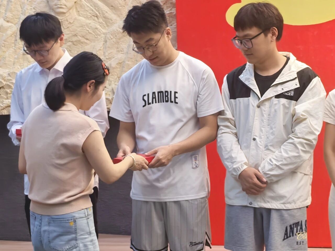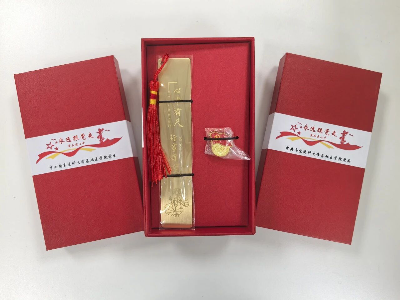 在庄重的氛围中,范老师和贺老师为即将告别校园、奔赴祖国各地的毕业生党员们送上了特别的毕业礼物——一枚熠熠生辉的党徽和一把寓意深刻的铜尺。这份礼物承载着党组织的深切关怀与殷切期望。党徽提醒毕业生党员时刻牢记党员身份,增强党员意识,无论身在何处、从事何种工作,在日常工作和生活中都要积极发挥先锋模范作用。铜尺象征规矩与准绳,希望毕业生党员牢记“心中有尺,行事有度”,恪守纪律规矩,时刻用心中的“尺子”丈量自己的言行。