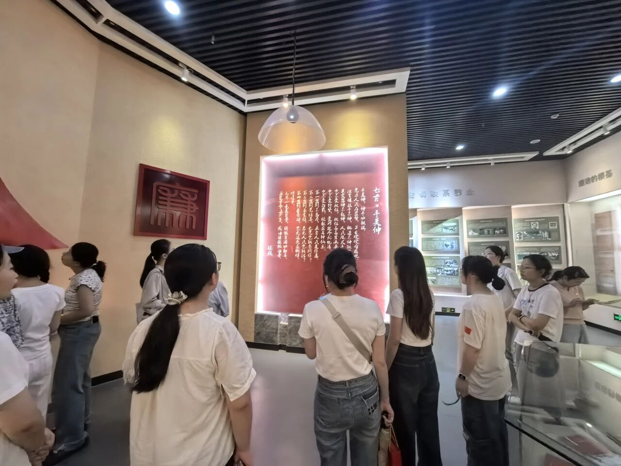 全体成员怀着崇敬的心情参观了新四军苏南抗日斗争历史陈列馆。在讲解员的引导下,大家依次参观了“抗击日寇:八省健儿汇铁流”、“挺进江南:开辟苏南根据地”、“战略展开:挥戈东进再北上”、“重创日伪:建设苏南根据地”和“收复失地:苏南军民迎胜利”五个主题展区。一幅幅珍贵的历史图片、一件件斑驳的实物展品、一段段详实的文字记载,让大家了解了那段波澜壮阔、艰苦卓绝的抗战岁月。同学们驻足凝视,认真聆听,从新四军的成立背景、发展历程以及在苏南地区英勇抗战的光辉历史中,深切感受革命先烈们坚定的理想信念、不屈不挠的斗争精神和伟大的爱国主义情怀。这是一次震撼心灵的爱国主义教育和党史学习教育,让全体党员对党的奋斗历程有了更加具象和深刻的认识。