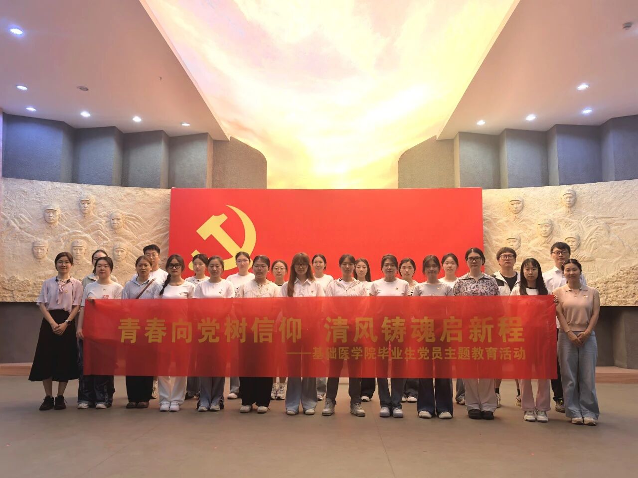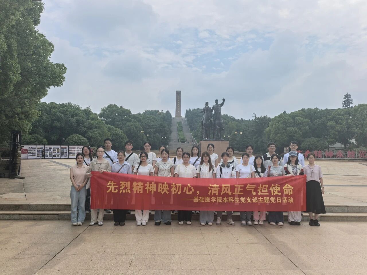 为强化学生党员理想信念教育、党性教育,做好毕业生党员教育,引导青年党员铭记历史、砥砺前行,基础医学院本科生党支部于6月14日组织2025届毕业生党员及支部党员,在本科生党支部书记范涵婷老师、毕业班辅导员贺淑蕊老师的带领下,赴茅山新四军纪念馆开展主题党日活动。