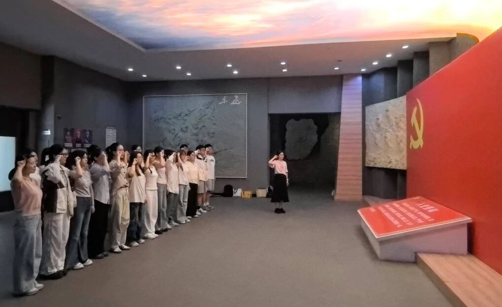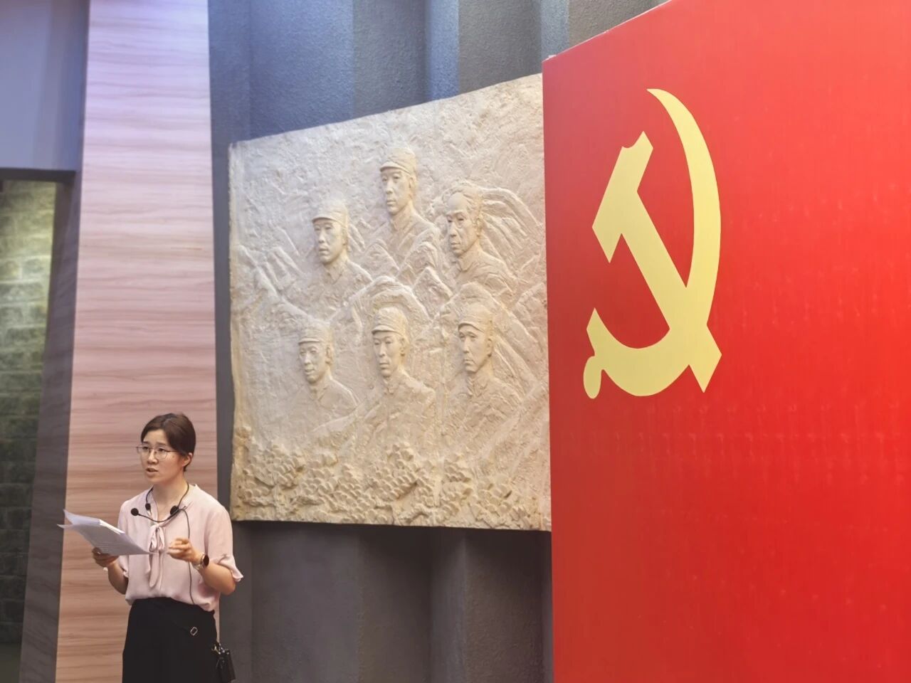 在新四军廉政建设史实展,全体成员共同学习新四军在极端艰苦险恶的战争环境中,如何坚持从严治军、廉洁奉公的光荣传统和宝贵经验。通过详实的史料、感人的故事和珍贵的文物,党员们深刻学习领悟了“铁军精神”——“铁”不仅体现在英勇善战、作风顽强上,更体现在纪律严明、清正廉洁上。这种植根于人民、服务于人民的廉洁本色,是铁军战无不胜的重要法宝,也是中国共产党人永葆先进性和纯洁性的生动写照。在鲜红的党旗下,全体党员在范涵婷老师的带领下,举起右拳,庄严地重温入党誓词,这不仅是初心使命的再宣示,更是将“忠诚、干净、担当”的要求和从铁军精神中汲取的廉洁力量落在行动中的郑重承诺。