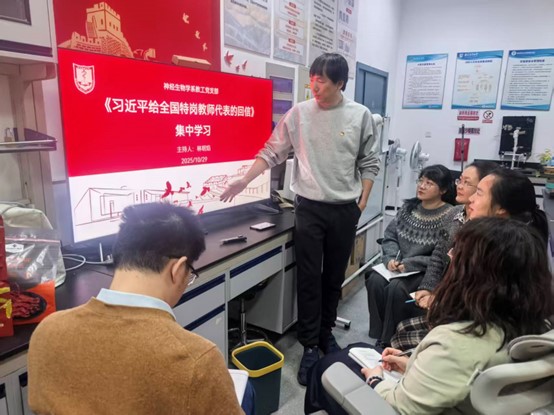 在学习过程中,大家深受鼓舞,并结合自身的教学和科研经历分享了学习心得。回信中体现了总书记对教育事业的重视和对教师的关怀,大家都感受到了作为人民教师的无上光荣和重大责任。大家纷纷表示,要将回信精神转化为实际行动,更加努力地投身于神经生物学的教学与科研工作中,为学生的成长成才和学科的发展贡献自己的智慧和力量。