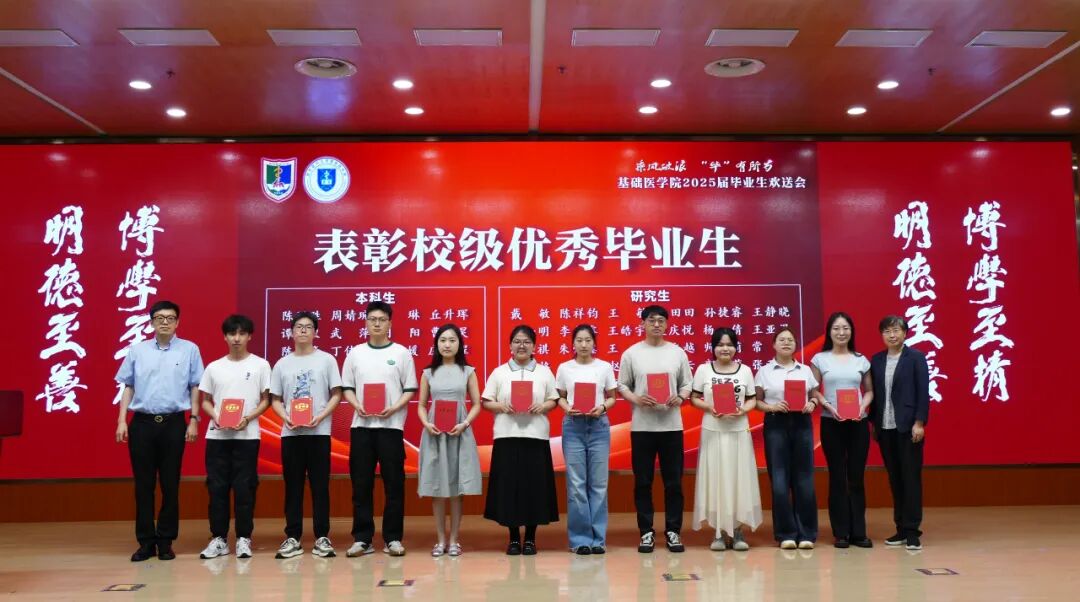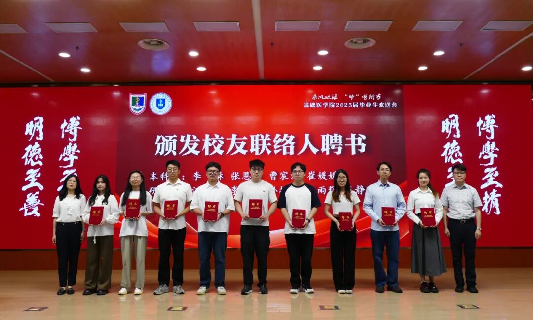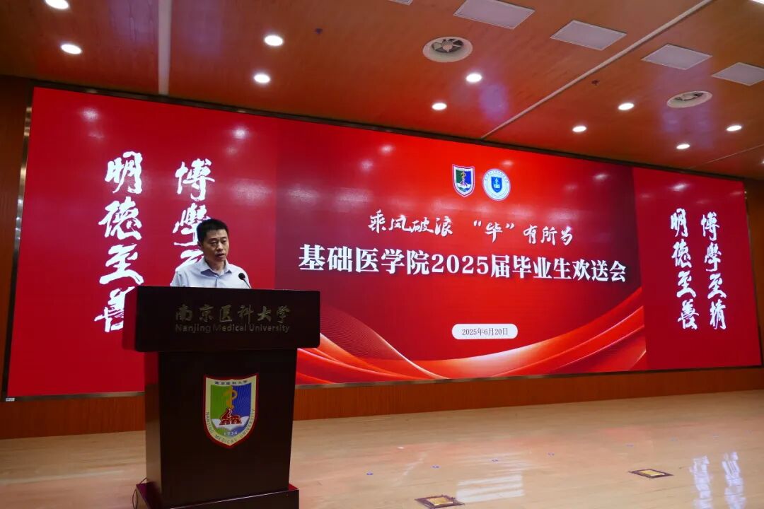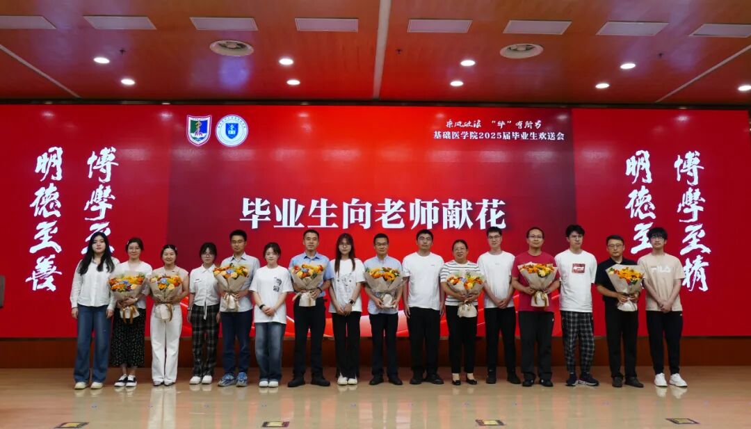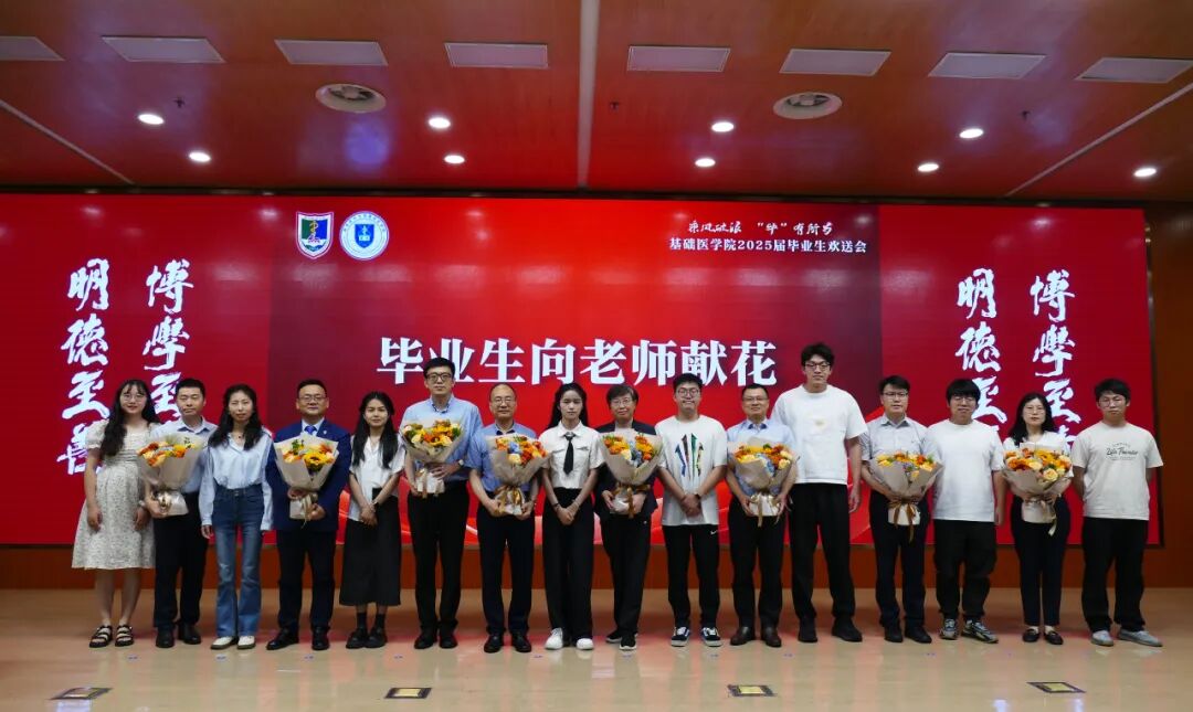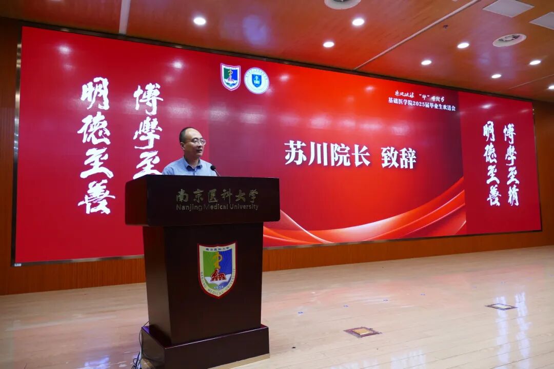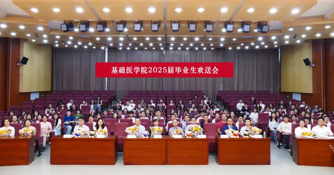 6月20日下午,基础医学院2025届毕业生欢送会在至诚楼三楼报告厅举行。基础医学院苏川院长,校教务处袁栎副处长,校资产与产业管理处郭兴副处长,基础医学院吴文明副院长、王觉进副院长、章静副院长,各学系老师代表、导师代表,学工办辅导员以及2025届全体本研毕业生参加活动。欢送会由学院段振东副书记、副院长主持。