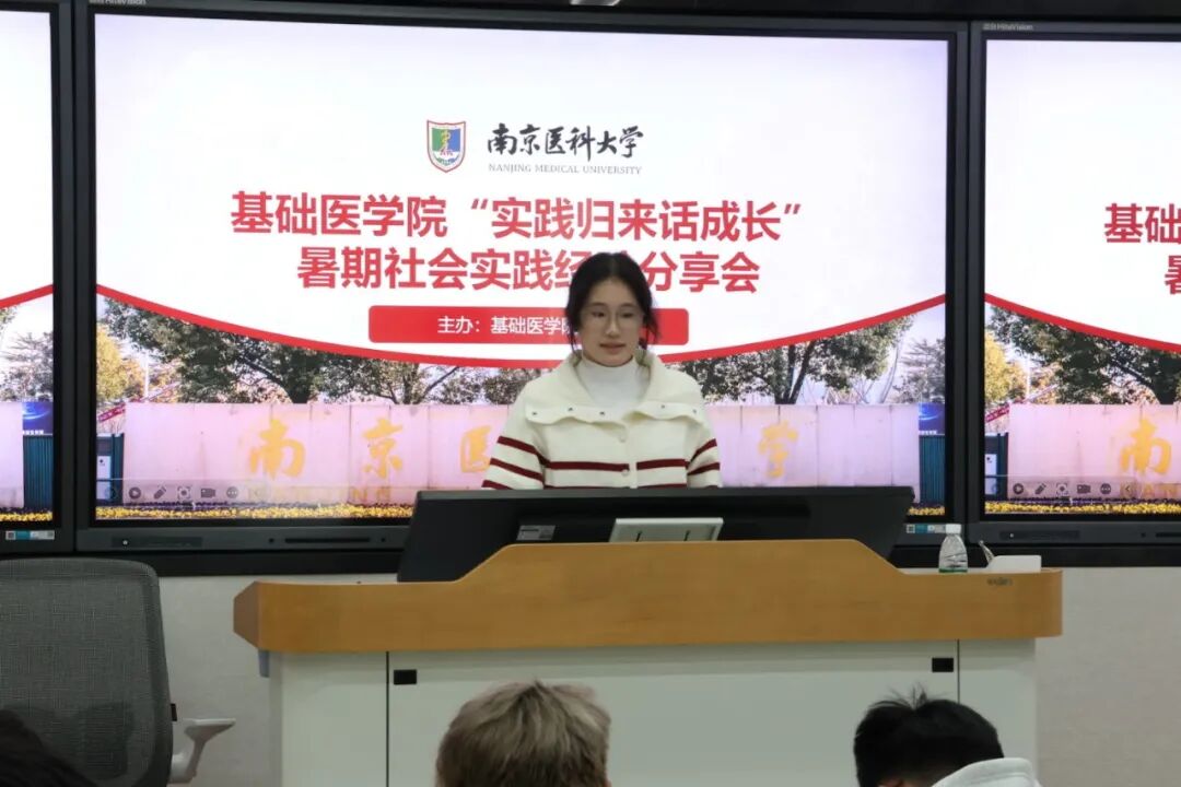 11月10日晚,基础医学院“实践归来话成长”主题分享会在博学楼阶3教室顺利举办。学院暑期社会实践优秀团队代表及2025级全体新生齐聚一堂,共同聆听实践故事、交流成长感悟。本次分享会由基础医学院分团委副书记许晨露同学主持。