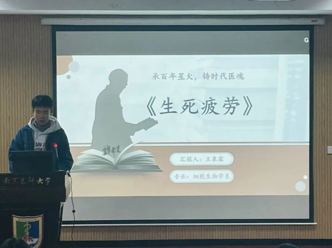 王泉霖同学解读了莫言的《生死疲劳》,以轮回叙事为引,探寻历史变迁中人性的坚守与力量,蓝脸对土地的坚守,藏着中国人对“根本”的执着,土地是民族的根,医学是生命的根,这份对初心的坚守,正是百年星火得以延续的密码。