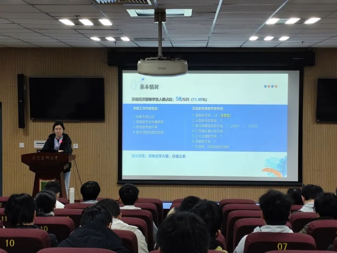 会议伊始,范涵婷老师首先介绍了学院困难生认定的基本情况,让同学们对学院的资助体系有了整体认识。随后,她详细解读了各类助学金的名称、名额分配、申请具体要求及资助金额,并将今年的受助名单向与会同学进行了公示,确保了资助工作的公开、公平、公正。