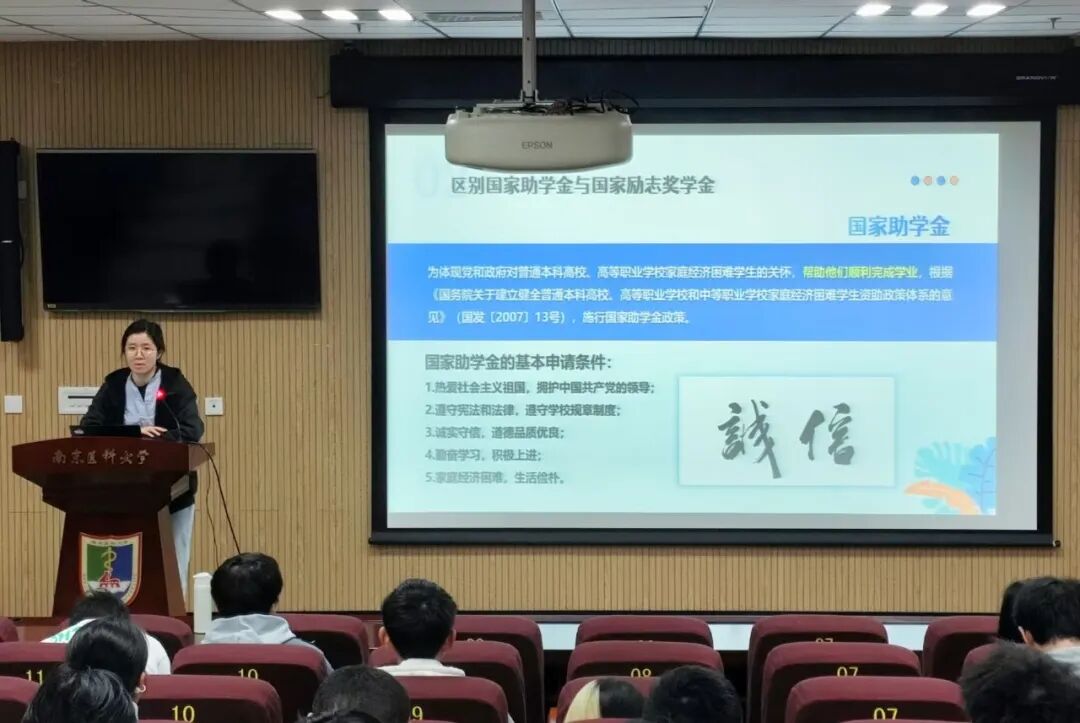 范老师着重对比介绍了 “国家助学金”与“国家励志奖学金” 在申请基本条件、评审侧重点等方面的区别。她强调,国家助学金旨在为家庭经济困难学生提供基本生活保障,助力其安心完成学业;而国家励志奖学金则更侧重于奖励品学兼优的家庭经济困难学生。清晰地讲解帮助同学们根据自身情况,进行更精准的申请准备。