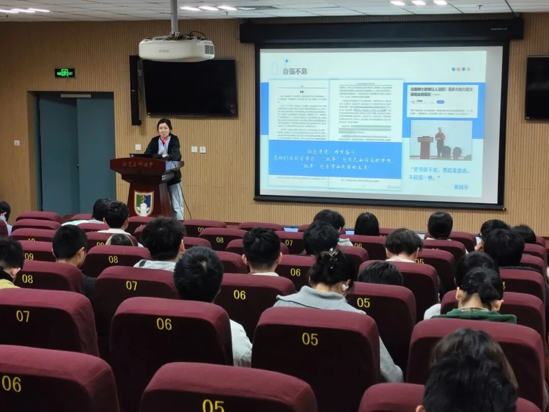范老师讲述了黄国平博士在其博士论文致谢中回顾自己不畏艰难、刻苦求学的感人故事。她勉励在场同学,知识改变命运,奋斗成就未来,希望同学们能始终保持对知识的渴望与对生活的热爱,通过坚持不懈地努力去实现个人的人生理想,并立志在未来为祖国的医疗卫生事业贡献自己的青春和力量。