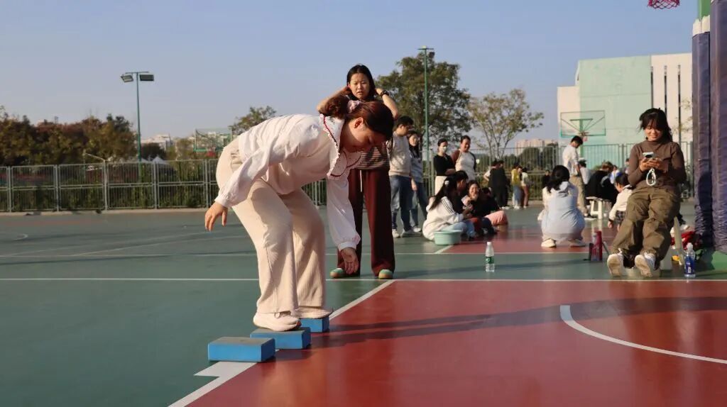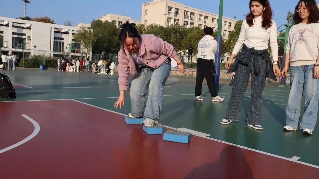 赛场另一侧的“摸石过河”项目,选手们手脚并用踩着道具“踏浪前行”,一步一挪都暗藏技巧,时而稳步试探,时而快速跨越,憨态可掬的动作引得全场大笑,拼的就是平衡感与爆发力的双重默契。