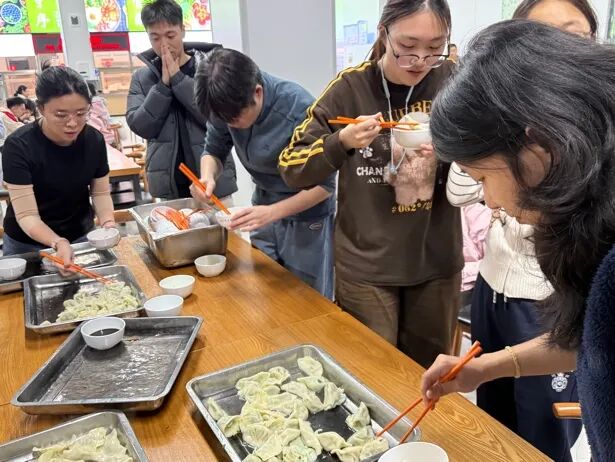 活动尾声,当一碗碗热气腾腾的饺子端上桌,整个食堂都弥漫着幸福的香气。大家品尝着自己的劳动成果,脸上洋溢着满足的笑容。这温暖,不仅来自胃里的满足,更来自心灵的充盈——原来,科研路上的孤单,可以被同伴的笑容驱散;成长中的压力,可以在师长的陪伴中释然。