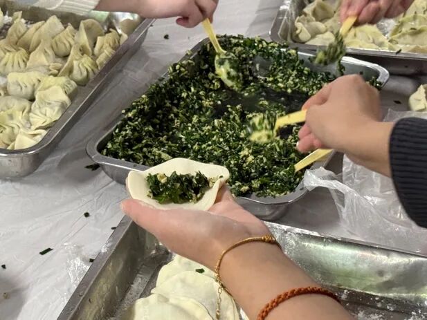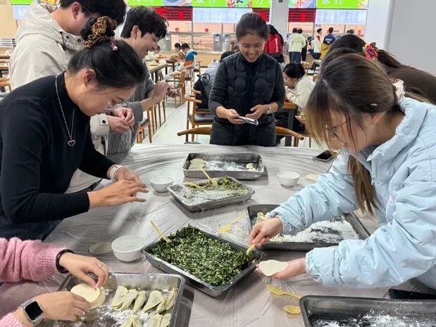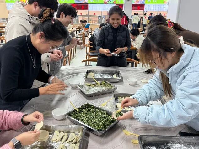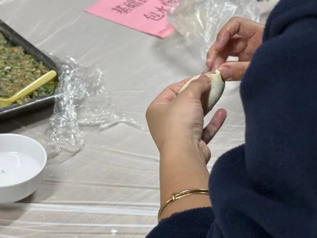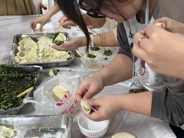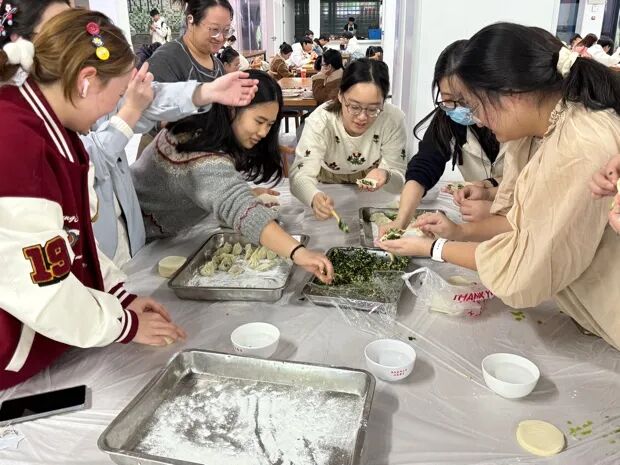 没有过于正式的心理疏导环节,但温暖在不知不觉中流淌。跨年级、跨专业的同学们在分工协作中自然熟络——你帮我递皮,我教你捏边;你分享家乡的包法,我倾诉科研的烦恼。在面粉飞扬的烟火气中,陌生的隔阂被打破,孤独感被治愈,每个人都在这场集体创作中找到了归属感。