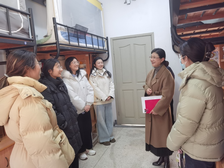 徐书记还走进学生宿舍,查看宿舍设施与环境,与同学们亲切交谈,细致询问同学们入校后的学习和生活情况,叮嘱大家共同营造整洁温馨、积极向上的生活空间。