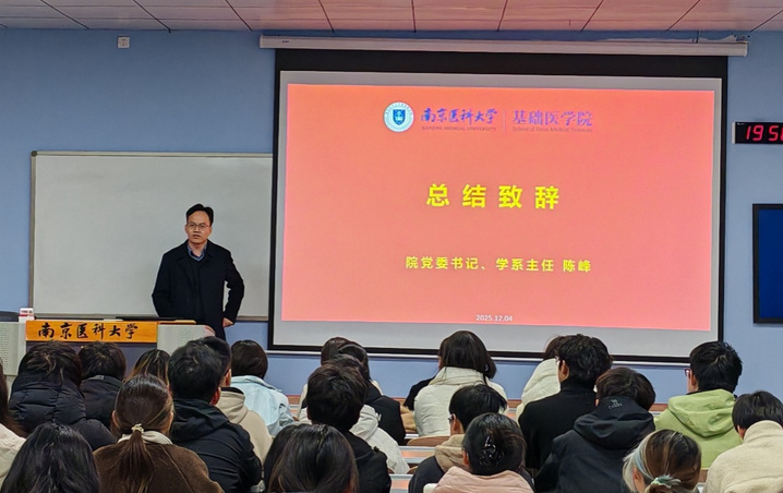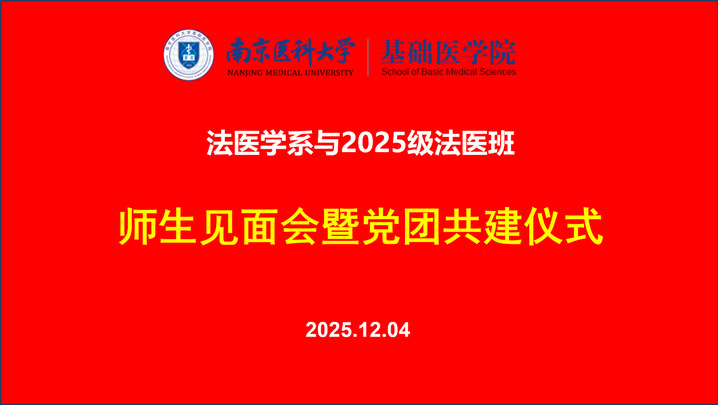 12月4日晚,我院法医学系在名达楼113教室与2025级法医1班和1班新生举行师生见面会暨党团共建仪式。基础医学院党委书记、法医学系主任陈峰教授,法医学系教师、研究生代表、2022级本科生代表和2025级法医两个班全体同学参加活动。活动由法医学系教工党支部副书记俞尤嘉主持。