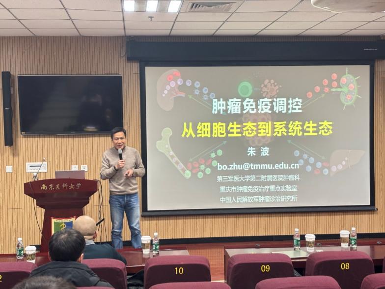 1月13日上午,基础医学院“学海论坛2026”第1期在江宁校区学海楼D002举行。重庆新桥医院朱波教授、清华大学胡泽平教授、天津医科大学石磊教授分别带来题为“肿瘤免疫调控:从细胞生态到系统生态”“代谢组学技术与肿瘤代谢重塑”“基因组不稳定性与肿瘤”的学术报告,报告由汪秀星教授主持。
