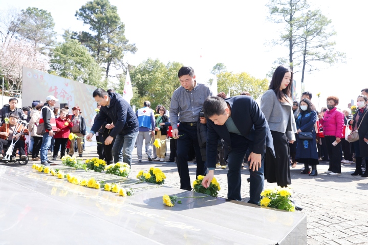 西天寺陵园内,松柏苍翠,庄严肃穆中透着盎然生机。师生、志愿者及红十字会工作人员手持菊花,肃立于纪念林前,共同为已故“捐友”默哀、献花、祭扫。南京市红十字会党组书记、常务副会长徐莉莉发表了深情讲话,代表红十字会向已故捐友致以深切缅怀,向捐友及家属的无私奉献表示由衷感谢,同时呼吁全社会参与到“沐手敬书”活动中来,让市民通过手书寄语的方式,向医学的“无言良师”表达敬意,平和而持久地感受生命的温度。现场还安排了饱含深情的朗诵节目,朗诵题目虽为《生命的淡香》,但在朗诵者铿锵有力的声音中,传递出的却是生命持久而浓烈的芳香。活动最后,段振东书记带领基础医学院师生向“捐友”献花、鞠躬,表达哀思和敬意。